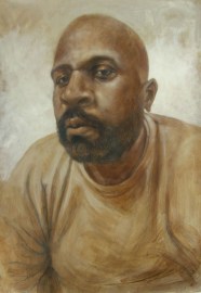 Phillip Nerestan is an artist and a stage hand (lighting and sound) with the International Alliance of Theatrical Employees (IATSE) Local One and Jazz at Lincoln Center. Originally from Port-au-Prince, Haiti, he lived in Jersey City and Brooklyn before settling in his current home in Beacon, New York. Mr. Nerestan’s art concerns the spirit and speaks to his ancestral roots in Haitian Vodou. In 2011 the Caribbean Cultural Center African Diaspora Institute (CCADI) in New York City exhibited his work in its Standing with Papa Legba exhibit, one of a two-part multimedia project (Re-Imaging Haiti) with the Museum of Contemporary African Diaspora Arts (MoCADA). The Foundry Art Centre included more of his work in its Concerning the Spiritual exhibit in the winter of 2016-17. Mr. Nerestan studied Haitian Vodou drumming with Frisner Augustin for several years and has served on the Board of Directors of La Troupe Makandal. Joe Radoccia sketched the portrait above and to the right.